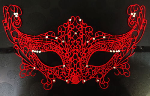 Dantel gibi örülmüş, saten bağlı, şekilli maske. Yılbaşı partilerinde, kostümlü partilerde, bekarlığa veda partilerinde mükemmel bir kostüm aksesuarıdır.