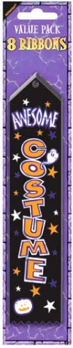 5cm eninde 22cm boyunda üstünde pırıltılı baskıyla “awesome costume” korkunç güzel kostüm yazan ödül kurdeleleri.