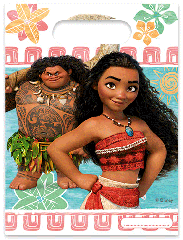 Moana temalı plastik mini hediye poşeti. Doğumgünü hediyeliklerini dağıtabilmek ve pinyata oyunu sonrasında minik misafirlerin şeker ve pinyata dolgularını toplayabilmesi için temanıza uygun hediye poşeti satın almayı unutmayın.